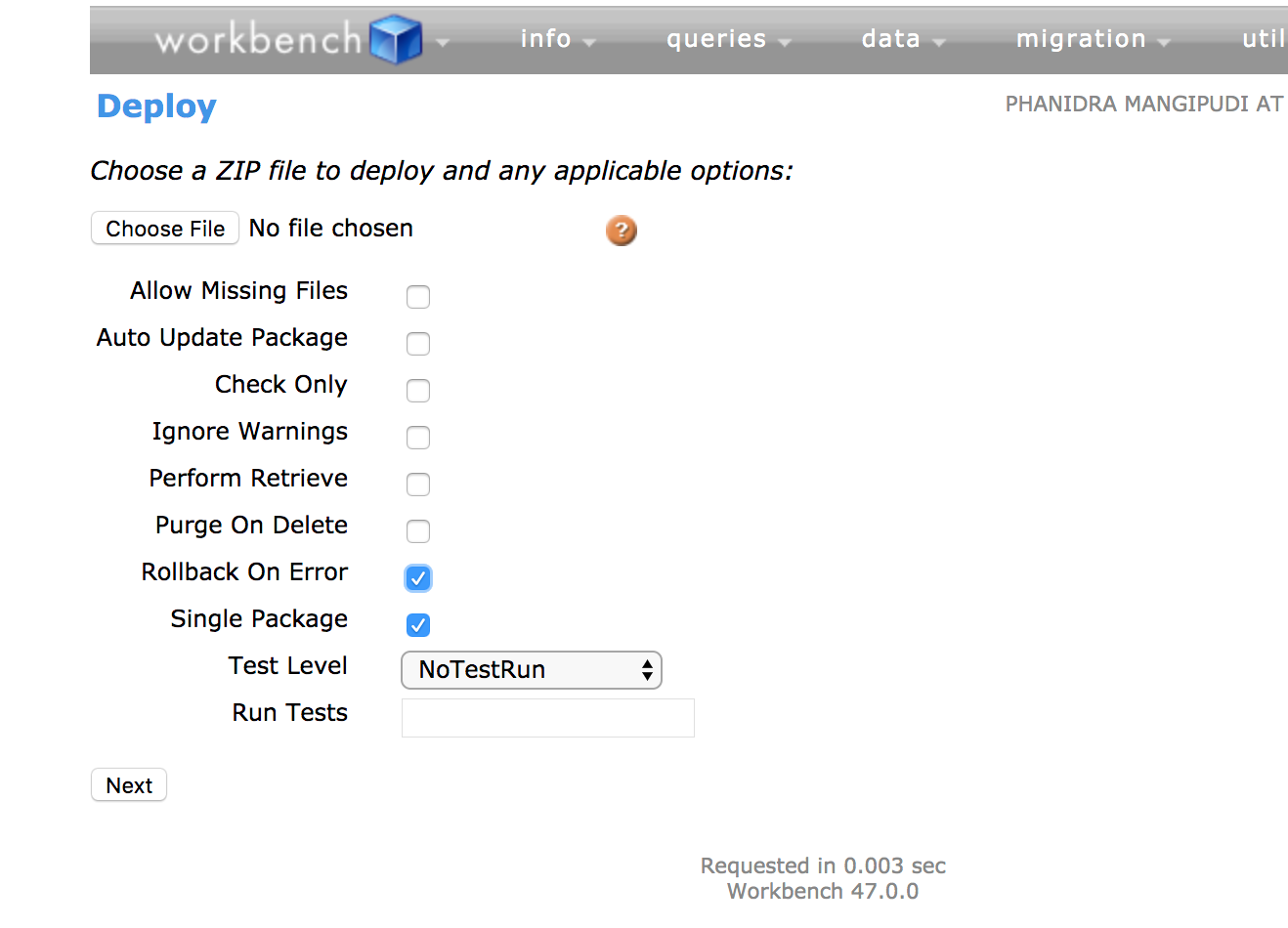 Login into Workbench using Sandbox or production then navigate to migration -> Deploy, your screen should resemble following screenshot