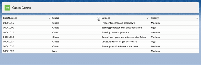 In this post we're going build Cases LWC which can be filtered by Status and Priority as shown below