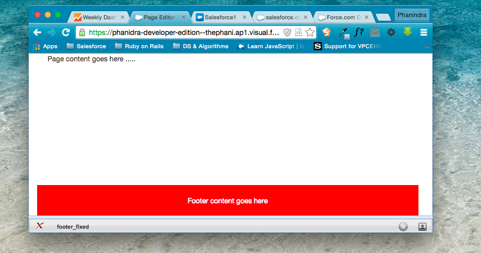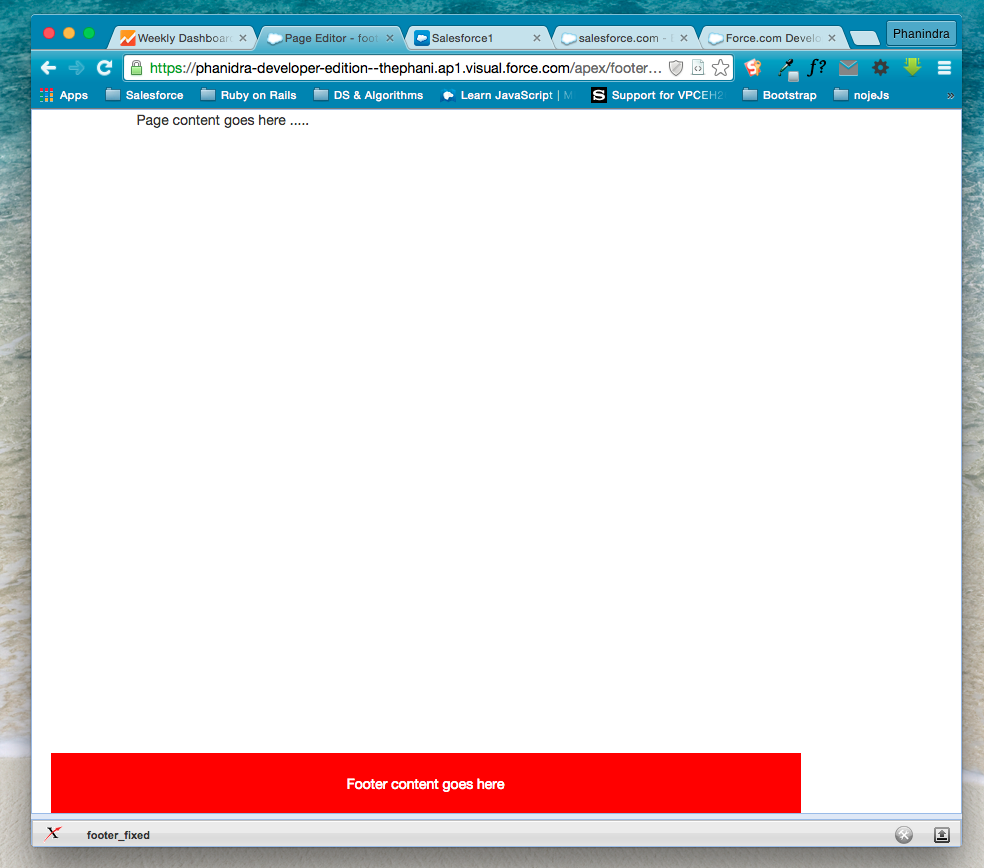 This post is on how to get responsive and fixed footer in an Visualforce Page, only one external library used Bootstrap