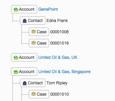 So if you want a view of Account => Contacts =>Cases,